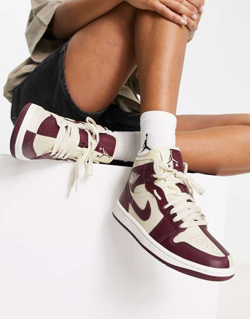 Nike Air Jordan 1 Mid sneakers in burgundy and cream ASOS Very well made.
