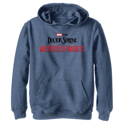 Boy s Marvel Doctor Strange in the Multiverse of Madness Main Logo Pull Over Hoodie Navy Blue Heather Large Very well made.