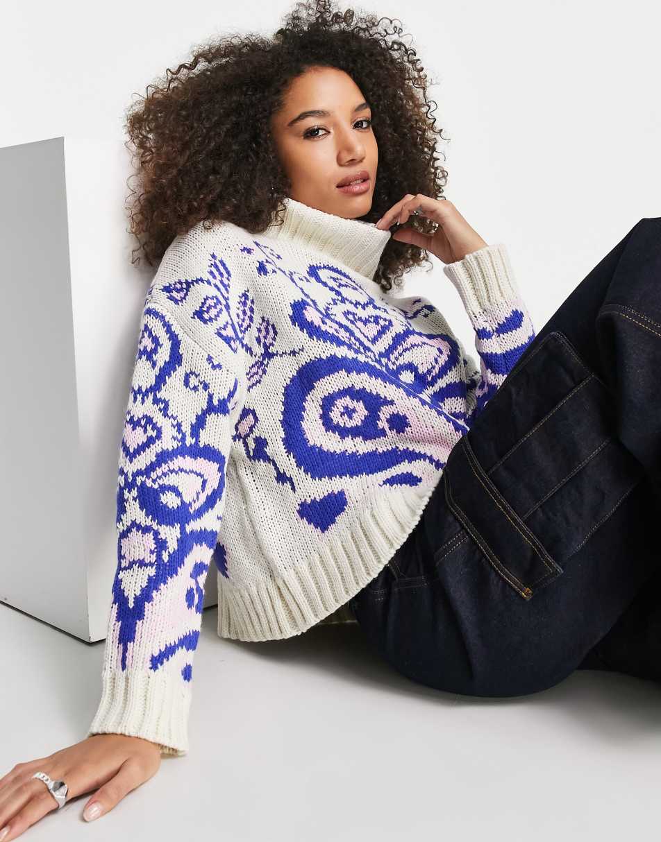 Bershka swirl print chunky roll neck jumper in white www Very well made.