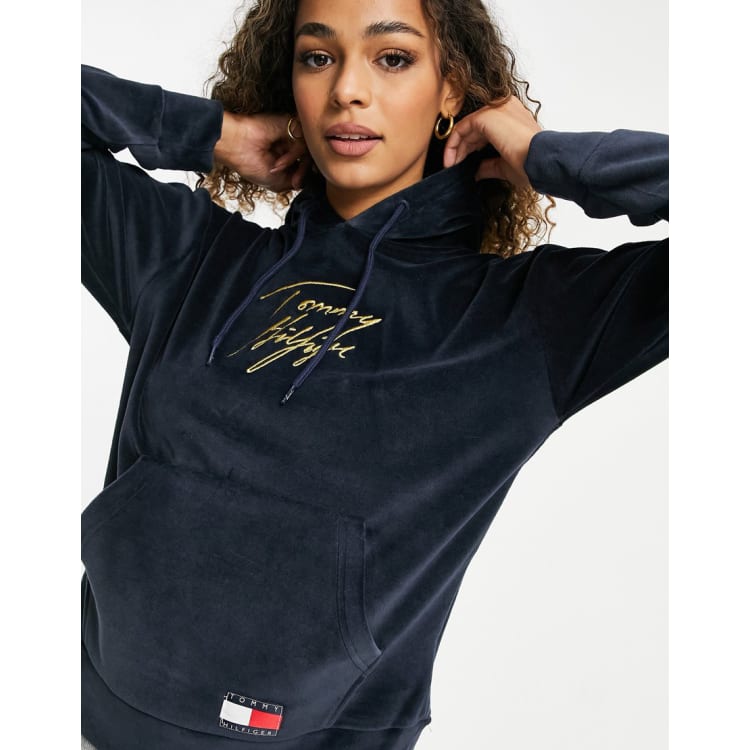 TOMMY HILFIGER SPORT NEW Women s Navy Velour Hoodie Top XXL TEDO Very well made.