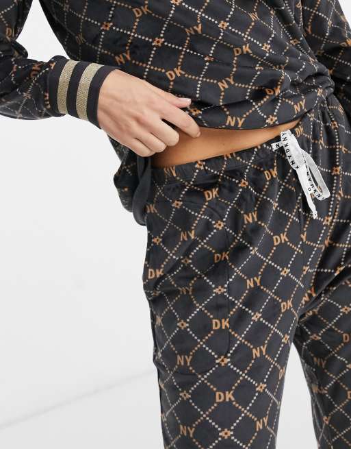 DKNY velour long sleeve trackie lounge set in all over logo print Very well made.