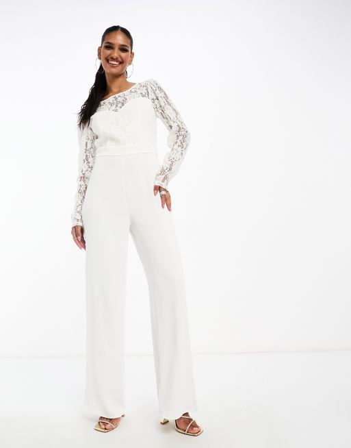 Vila bridal lace long sleeve jumpsuit in white Very well made.