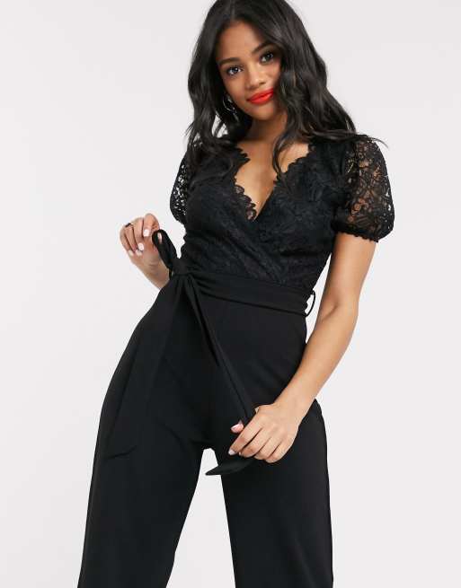 Lipsy Lace Trim Jumpsuit in Black Lyst UK Very well made.