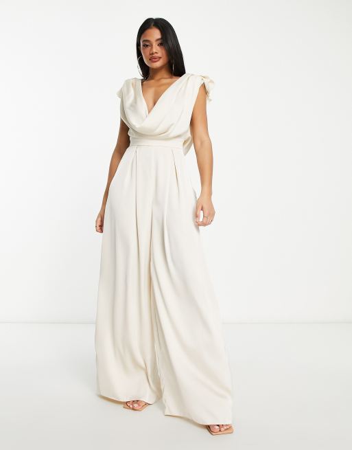 ASOS LUXE satin corsage plunge neck wide leg jumpsuit in champagne Very well made.