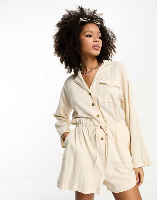 Khaki Shell Elasticated Waist Shirt Playsuit PrettyLittleThing Very well made.
