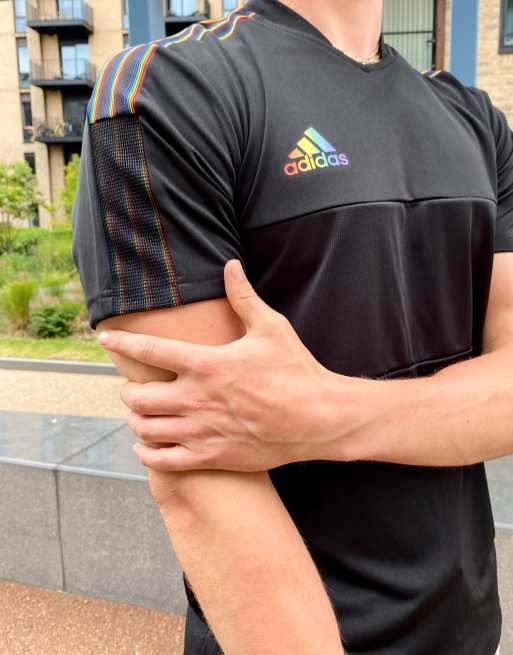 adidas Football Tiro t shirt with rainbow stripe in black Very well made.