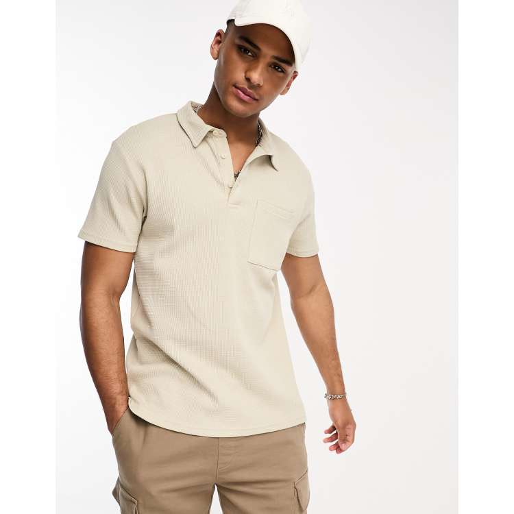 Beige Polo Shirts For Men Mens Casual Solid Slim Fit Basic Tops Short Sleeve Turn Down Collar Button Down Knitted Hollow Out Button Closure Through Very well made.