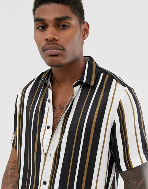 ASOS DESIGN relaxed shirt in white black and gold stripe Very well made.