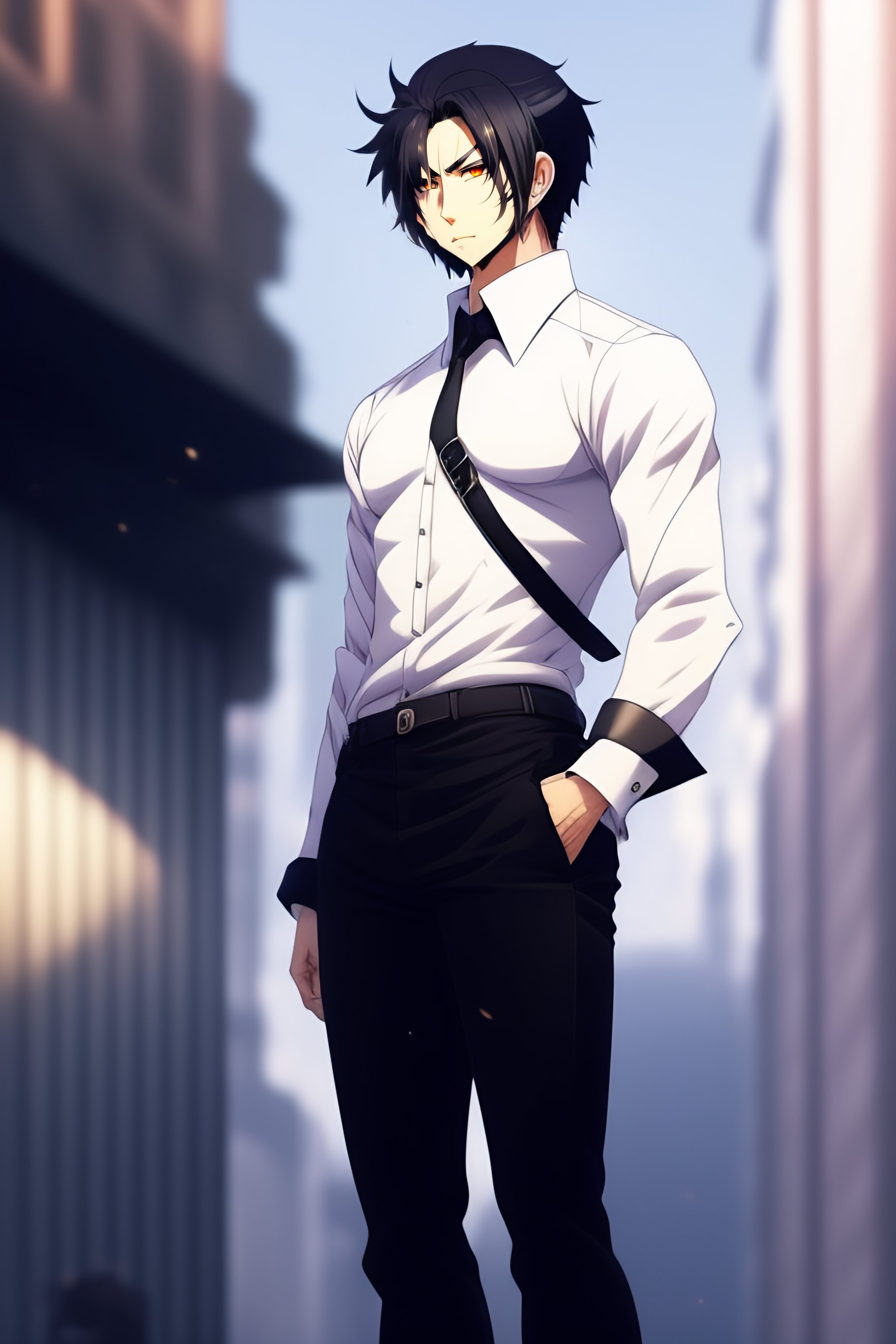 Lexica A man in a white shirt and black pants a character Very well made.