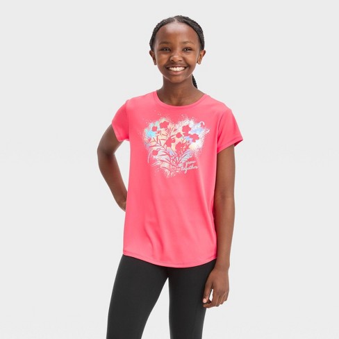 Girls Short Sleeve Grow Together Graphic T Shirt All In Motion Coral Pink XS Very well made.