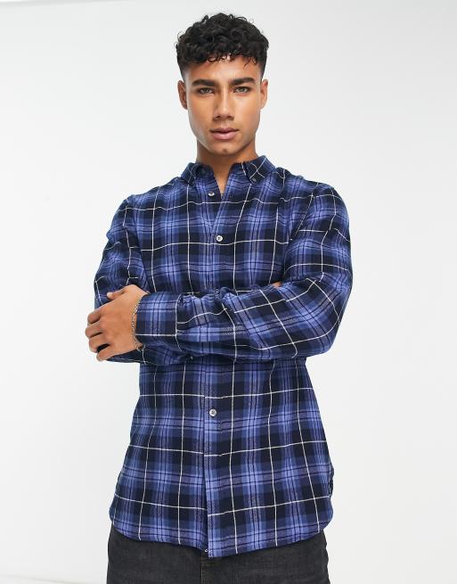 French Connection long sleeve multi plaid flannel shirt in blue Very well made.