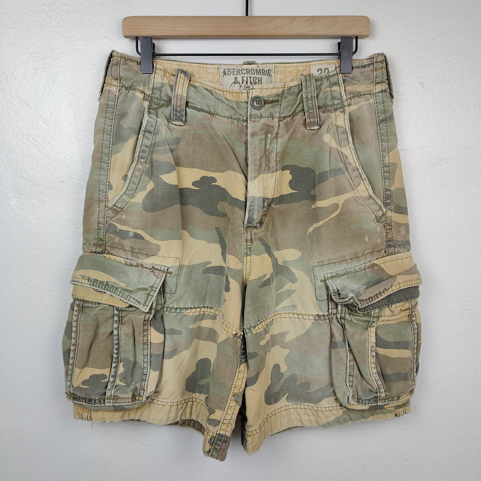Abercrombie Fitch A F Mens 32x9 Green Army Camo Cargo Heavy Very well made.