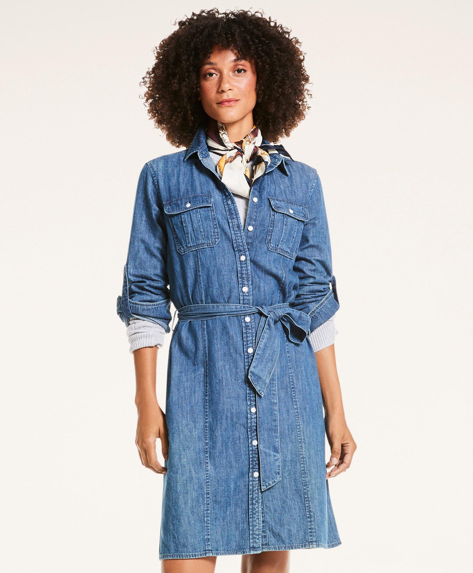 Cotton Chambray Button Up Shirt Dress Very well made.