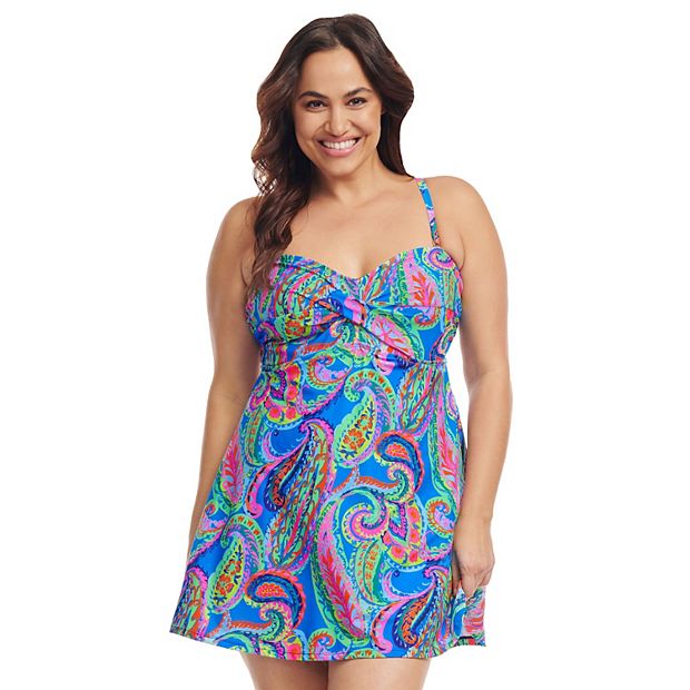 Plus Size Mazu French Paisley Twist Front A Line One Piece Swimdress Very well made.