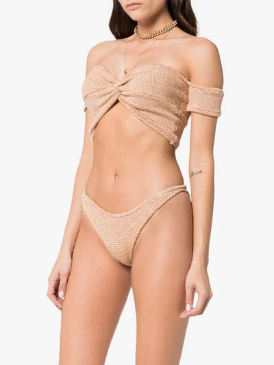 Hunza G Brigitte Knotted Off shoulder Bikini Brown ModeSens Very well made.
