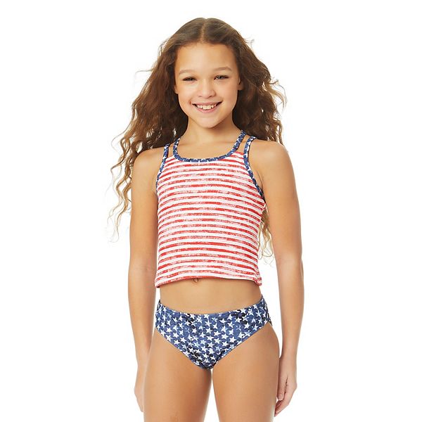 Girls California Waves Stars Stripes Tankini Top Swim Bottoms Set Very well made.