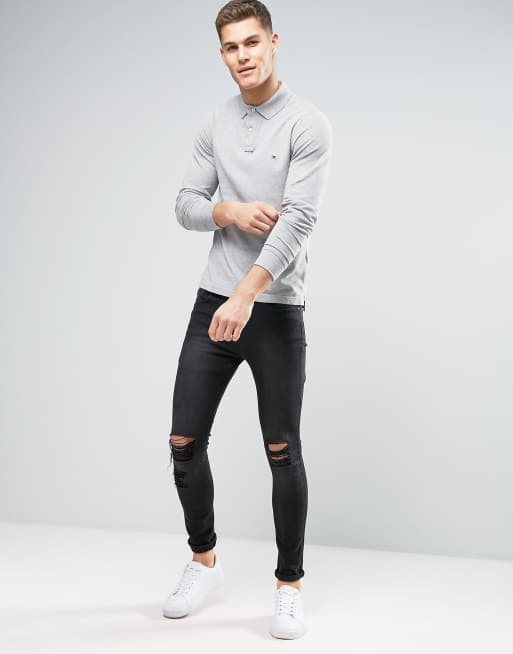 Tommy Hilfiger Long Sleeve Polo Pique Slim Fit Flag Logo in Gray Heather Exclusive to ASOS Very well made.