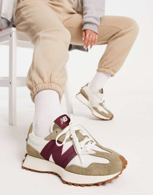 New Balance 327 sneakers in off white with burgundy detail Exclusive to ASOS Very well made.