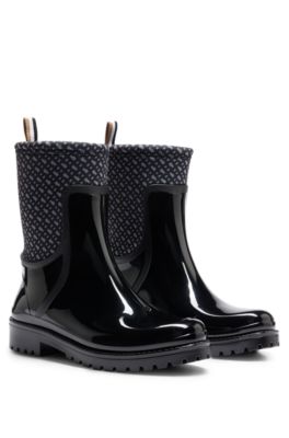 BOSS Glossy Chelsea style rain boots with branded trim Very well made.