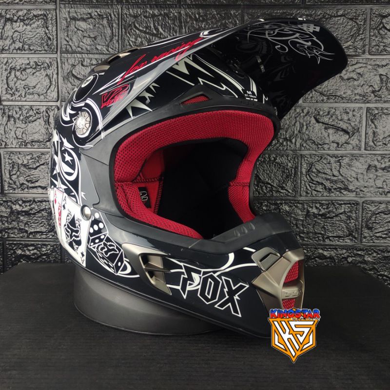 Jual HELM CROSS FOX PILOT V2 BLACK WHITE SUPERMOTO CROSS Very well made.