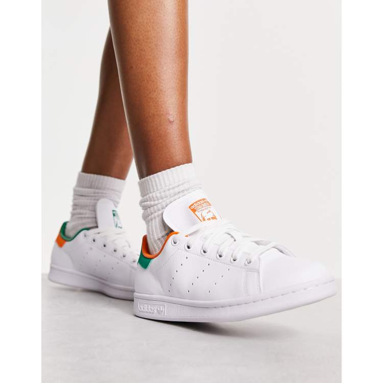 adidas Originals Stan Smith trainers in white with green and orange detail Very well made.