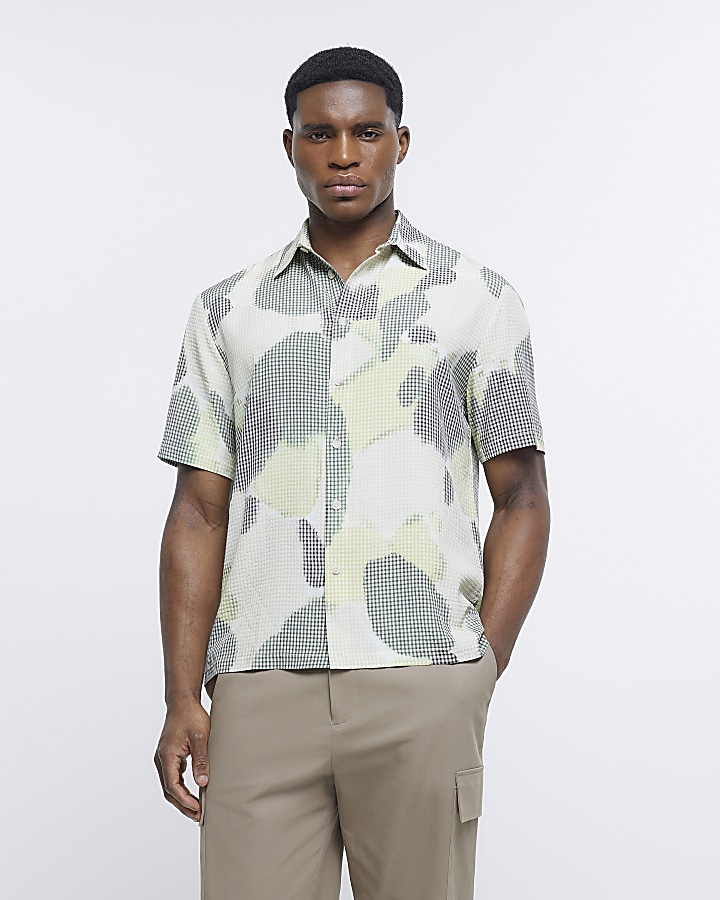 River Island Shirts Mens Stone Leaf Print Short Sleeve Shirt Very well made.