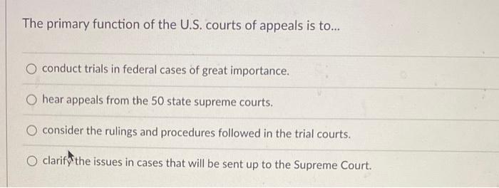 The primary function of the U.S. courts of appeals is Chegg Very well made.