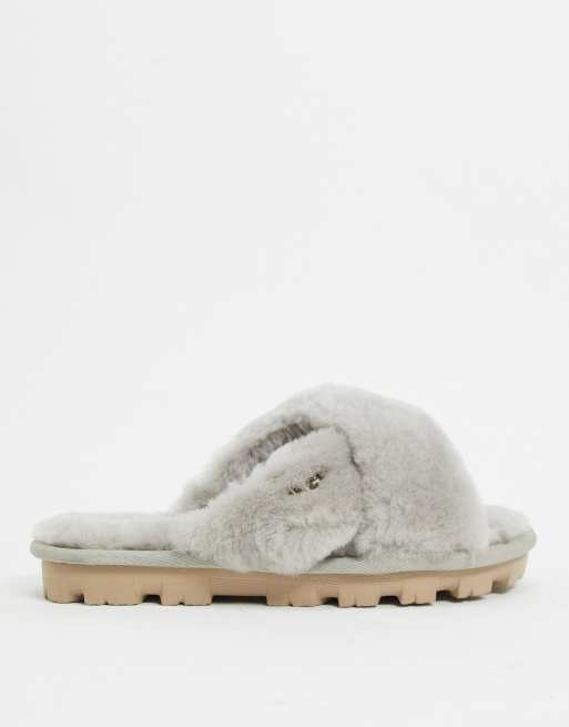 UGG Fuzzette cross strap fluffy slippers in coral Very well made.